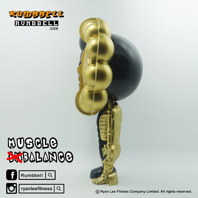 這次正式因為「肌肉痛症」問題,啟發Ryan Lee 創作出這枚香港首次發售的Rumbbell Muscle (Im)Balance Figure。Rumbbell 以半解頗的造型出現,讓大家知道他頭上的圓形設計概念,是來自10 個不同重量的啞鈴所組成,身體刻有清晰精緻的肌肉紋路與骨骼結構,配上貴氣型格的「鋼琴黑」與金色,展現高貴典雅的藝術氣息。