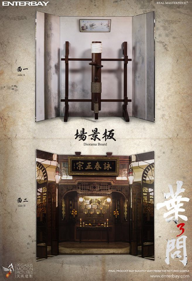 最後,本作還將附有雙面的場景板,能夠精彩地重現電影中葉問師傅與張天志師傅的武館場景,並搭配上匾額、掛畫讓場景更加具有層次。 精彩豐富的組合內容,絕對是喜愛《葉問》電影作品影迷的最佳收藏! 今年的TOY SOUL 2015 千萬別錯過如此精彩作品!