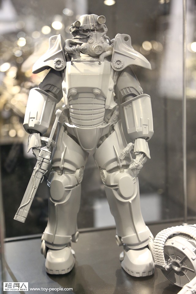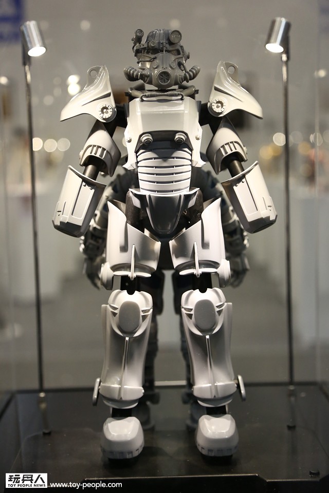 先前少量情報曝光的異塵餘生(Fallout4)動力甲在現場展出囉!眼尖的粉絲不難發現正是T-45無誤!根據現場工作人員透露作品分成兩個展示櫃展示,是因為要呈現穿脫盔甲的設計!小編真的超興奮,因為以1/6的高端蒐藏型可動作品來看,目前還沒有人可以做出真正穿著、卸下盔甲的設計,這真是太屌啦!