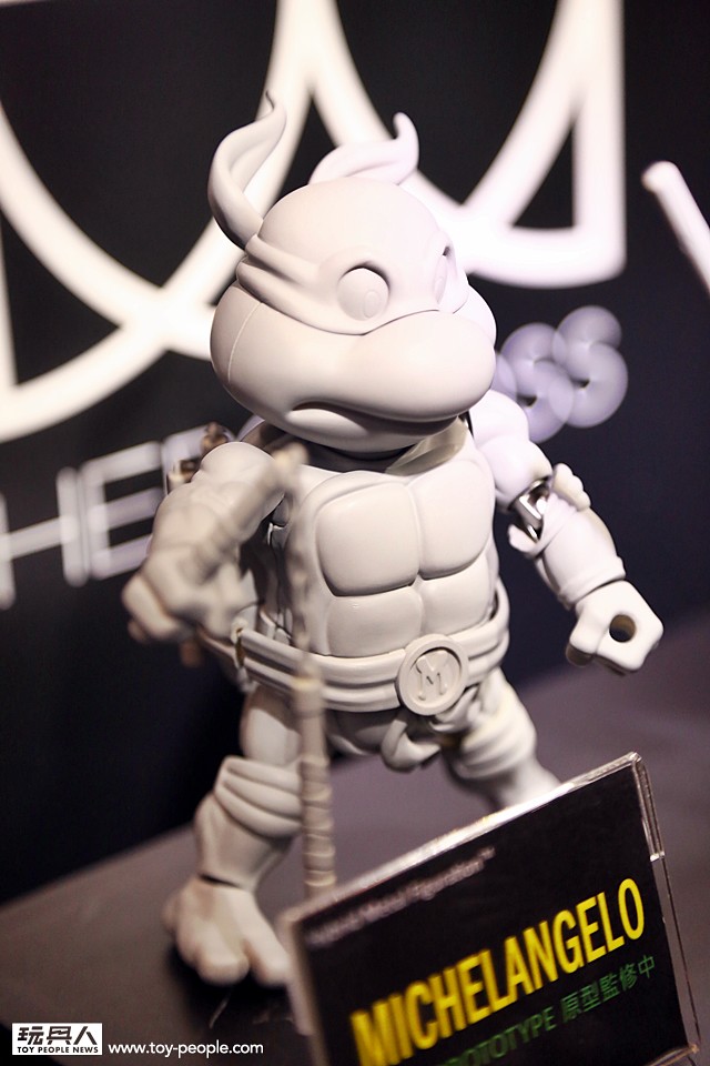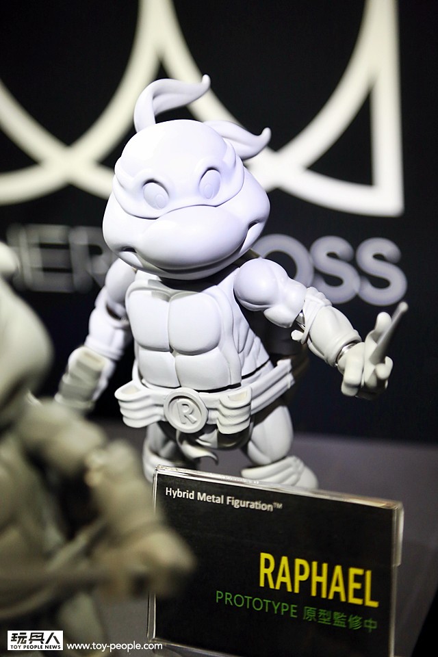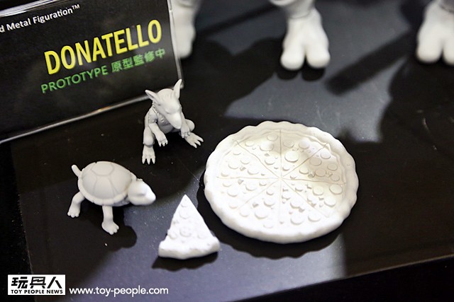會場除了有販售電鍍版本的柯博文作品之外,還有展出了Hybrid Metal Figuration 系列首度出現的原型作品:漫畫版本的忍者龜作品,這四款作品除了有其招牌的武器之外,還包含了多款的配件,如PIZZA、小烏龜、老鼠等等的經典配件。不管是在臉部、身體、還是配件的打造上都令人非常期待啊。上色後的完成品一定會超級精彩!