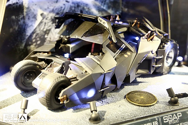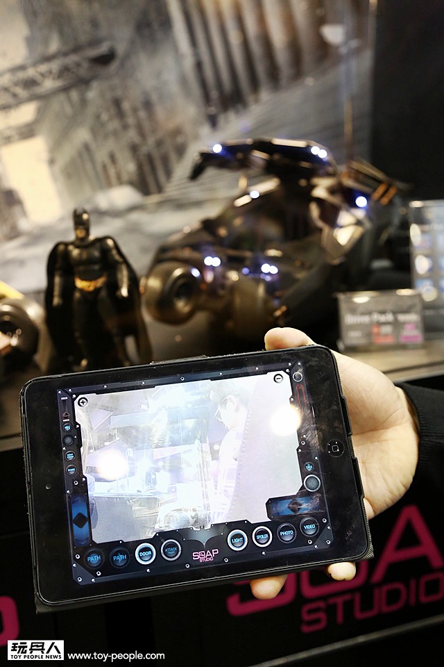 以遙控蝙蝠車引爆大人氣的SOAP STUDIO今年在會場再次展出多款蝙蝠俠載具。系列作品都配有攝影鏡頭跟多重可遙控動作配件,可以透過智慧型裝置裝載APP遙控。最新作品與「蝙蝠俠對超人:正義曙光」電影合作,推出磁浮蝙蝠戰鬥機蒐藏品以及主打電影新款蝙蝠車,搭載更較前作升級的720P攝像鏡頭與避震機能,搭配附贈的蝙蝠俠與超人人偶,絕對讓您玩的過癮!