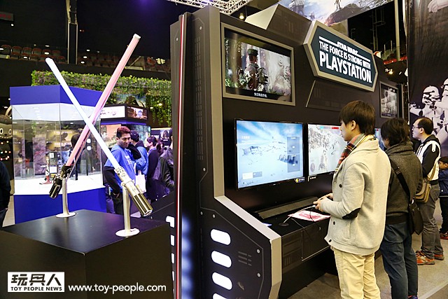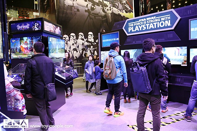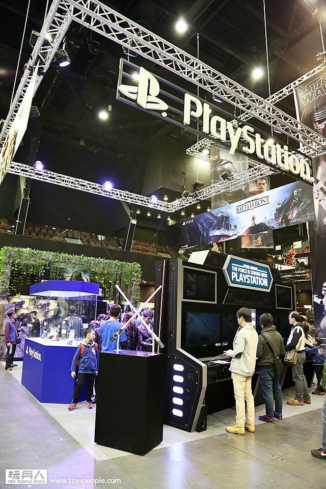 PlayStation展區在本次展覽佔比相當重,強打年度大作「星際大戰:戰場前線(Star Wars: Battlefront)」,為此還與HOT TOYS合作推出全球限量450尊的Shook Trooper 1/6 珍藏人偶,只要現場購買星際大戰同捆組,就能以優惠價格港幣1188元預購(每日限量100名),或現場每日購買產品滿港幣500元以上,就能以優惠價格港幣1588元預購(每日限量50名)。