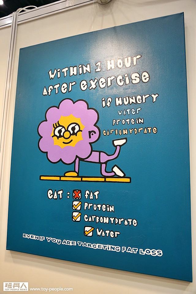 此外,在「Rumbbell」的攤位還有展出許多結合了健身運動與超可愛公仔的商品,包含了有益身心健康的遊戲卡片以及遊戲中出現的可愛運動小Rumbbell。值得一提的是,在會場還有展出超巨大1:1 比例的作品以及過去與Milk 雜誌合作推出多款的足球Rumbbell。有興趣的玩具人不妨前去會場D12 攤位逛逛。