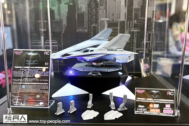 以遙控蝙蝠車引爆大人氣的SOAP STUDIO 今年在會場再次展出多款蝙蝠俠載具。系列作品都配有攝影鏡頭跟多重可遙控動作配件,可以透過智慧型裝置裝載APP 遙控。最新作品與「蝙蝠俠對超人:正義曙光」電影合作,推出磁浮蝙蝠戰鬥機蒐藏品以及主打電影新款蝙蝠車,搭載更較前作升級的720P 攝像鏡頭與避震機能,搭配附贈的蝙蝠俠與超人人偶,絕對讓您玩的過癮。