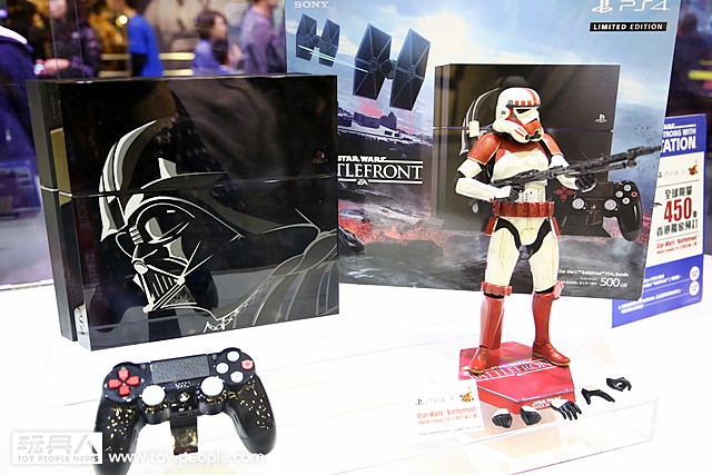 PlayStation 展區在本次展覽佔比相當重,強打年度大作「星際大戰:戰場前線(Star Wars: Battlefront)」,為此還與HOT TOYS 合作推出全球限量450 體的Shook Trooper 1/6 珍藏人偶,只要現場購買星際大戰同捆組,就能以優惠價格港幣1,188 元預購(每日限量100 名),或現場每日購買產品滿港幣500 元以上,就能以優惠價格港幣1,588 元預購(每日限量50 名)。