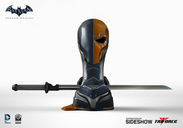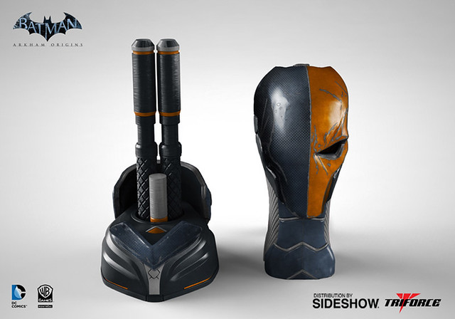 成立於美國紐約,擅長推出電玩中經典角色的1:1 頭盔或是武器收藏複製品的歐美TriForce 品牌,繼日前推出了電玩「蝙蝠俠:阿卡漢起源」(Arkham Origins)中蝙蝠俠面罩複製品與蝙蝠飛鏢複製品之後,又將要推出蝙蝠俠死敵,同來自於電玩蝙蝠俠:阿卡漢起源的「喪鐘」(Deathstroke)頭像與武器結合的複製品。