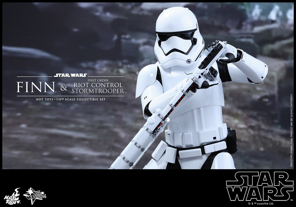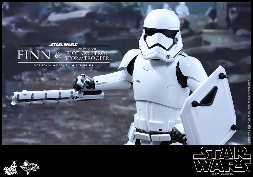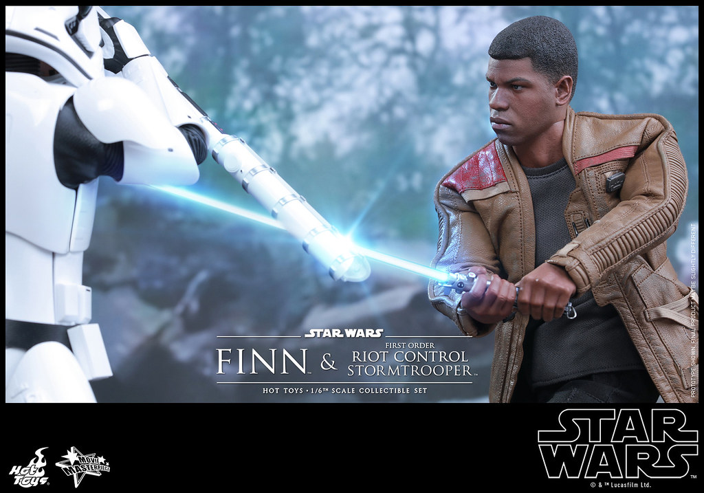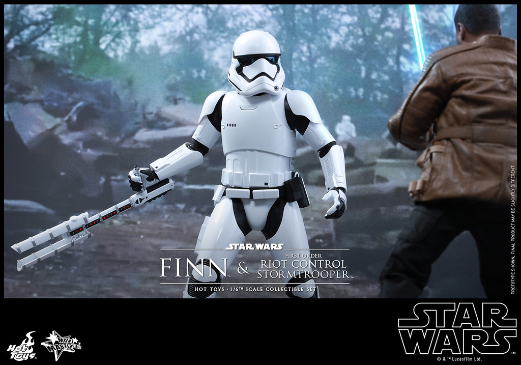 Hot Toys 公司在推出了單本版本的「芬恩」(Finn)1/6 比例的人偶作品之後,又將要推出一款雙人組合包作品。在電影中「塔可達納星球」(Takodana)上,「芬恩」在碰上第一軍團特殊兵種「鎮暴風暴兵」(First Order Riot Control Stormtrooper),這款雙人組合包作品一次滿足了各位玩具人想擺出對打的場景需求。