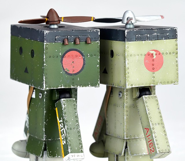這次的作品,將阿楞的造型COSPLAY了零式戰機,將特徵的螺旋槳設置於頭頂,並施以主要視覺配色,搭配舊化、戰損的斑駁塗裝,以及配備一款炸彈作為配件。另外,「21型」與「52型」造型上的排氣管設計不同,也實地完整呈現。 相信接下來2016年,阿楞會有更多不同的有趣COSPLAY 造型現身!各位阿楞迷開始存錢吧~:D