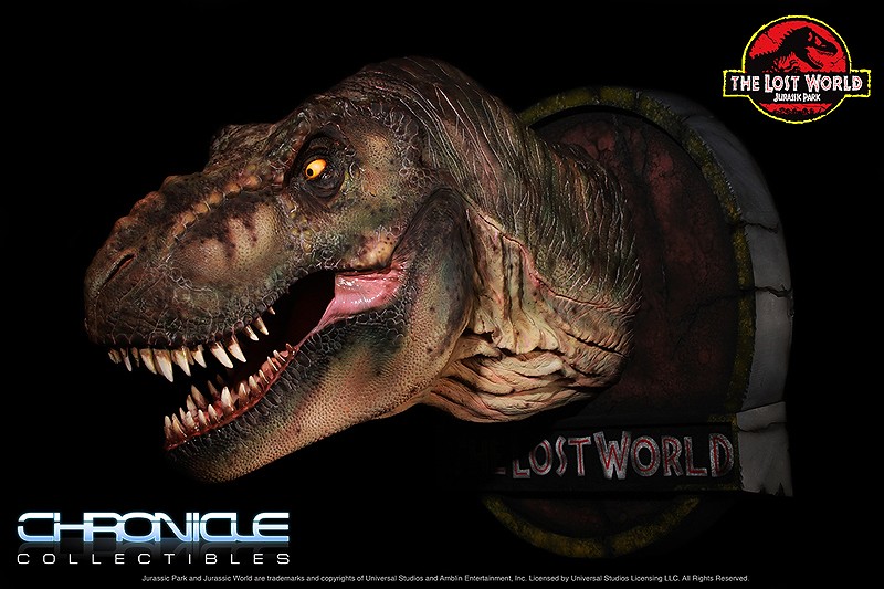 主力強打推廣電影美術、道具設計的好萊塢新銳品牌Chronicle Collectibles 公司又將要推出其最新的雕像作品了。拋開過往Chronicle 品牌主打機械感十足如魔鬼終結者、機器戰警等作品的印象,這次其要推出在1997 年上映的科幻冒險電影「侏羅紀公園:失落的世界」(The Lost World: Jurassic Park)中登場的「霸王龍」(T-Rex)頭像作品!