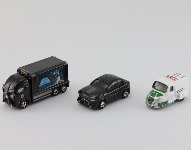 日本玩具公司TAKARA TOMY的TOMICA合金小車系列以《星際大戰》為主題,推出以劇中人氣角色結合合金車輛設計的系列,讓車子變成有星戰角色外觀有趣的造型,命名為《STAR CARS》系列已經推出了第一彈和第二彈兩彈精彩的合金小車,此次又追加推出『超商限定的版本』Star Cars 7-11 Exclusive 2015,新限定版的黑武士變成貨卡,加上闇影暴風兵SHADOW STORMTROOPER款還有特別的「R2-711」的綠色款三輪車,將經典星戰當中的「R2-D2」機械人改變成為「R2-711」。