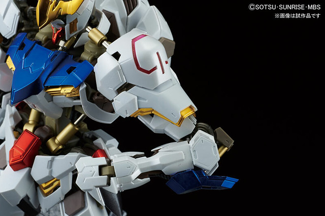 日BANDAI萬代玩具公司的高度結構系列「Hi-Resolution Model」(名稱暫譯)新系列,將推出1/100比例的獵魔鋼彈 1/100 ガンダムバルバトス 複合材料全關節可動的新型態組裝模型商品,才公開HG系列將推出1/144比例的獵魔鋼彈,此次新系列強調使用多種材質來表現其特別的機體,獵魔鋼彈內部的結構骨架是部份關節使用「金屬材質」來組合塑料製作,故事中納米裝甲「ナノラミネートアーマー」(名稱暫譯)的設定,也將外部裝甲的部份需要自行以組裝模型方式進行來在現,身上金色塗裝部份也以電鍍塑料來製作,還有部份紅色以透明材質的塑料呈現等等。