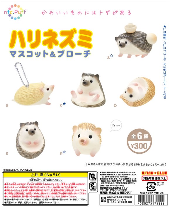 日本知名轉蛋廠牌「奇譚俱樂部」將動物的可愛造型立體化的暢銷系列「ntc.Puff」,最新作將推出「刺蝟」主題! 內容將收錄刺蝟立體造型的可愛吊飾與別針~