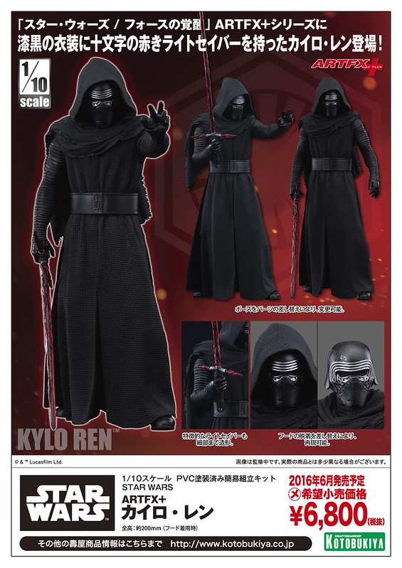 日壽屋玩具公司的ARTFX+立體造型系列將推出《星際大戰:EP#7 原力覺醒》,當中的主要敵對的反派角色凱羅 忍 カイロ・レン/Kylo Ren,相信喜愛《星際大戰》電影作品的玩具人都已經進戲院欣賞第七部曲「原力覺醒」,在最新集數中擔任主要的反派人物凱羅 忍手持著特殊十字造型的光劍印象深刻,當然各間玩具廠商也推出其各式各樣的週邊商品。