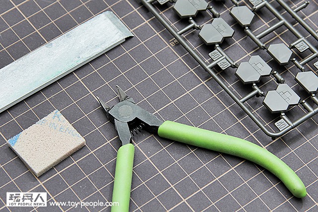 ▼ 製作開始!首先做模型起手式一定是斜口鉗、研磨砂紙與研磨海綿。