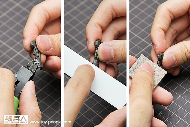 ▼ 接下來依序將湯口剪平→用砂紙打磨湯口→使用研磨海綿拋光。