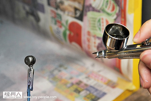 ▼ 用噴筆或GAIA簡易式噴灌將調好的漆料均勻噴塗在骨架零件上。