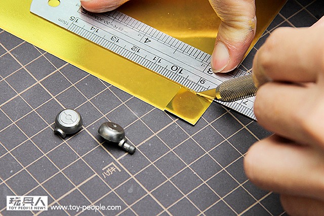 ▼ 接下來針對其他金色部份我們可以使用金箔貼紙來補色,除了和一般噴上金漆相比,表面的光澤和反射程度都更為漂亮之外,貼紙的特殊材質,更俱有延展性,能夠服貼任何曲面。