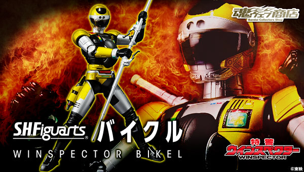 《特警威士邦/Winspector》特警ウインスペクター是日本東映所製作的特攝電視作品之一,也是「金屬英雄系列」メタルヒーローシリーズ的第9部之作,日BANDAI萬代玩具公司的S.H. Figuarts可動系列之前已經推出了《特警威士邦》火焰,這次將再推出黃色的拜克爾バイクル/BIKEL(名稱暫譯),英文名稱是「BIKEL」有機車模樣的設計元素,故事中身份是輔助特警的機械夥伴。