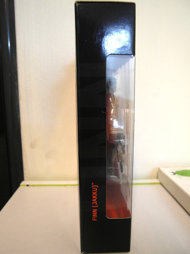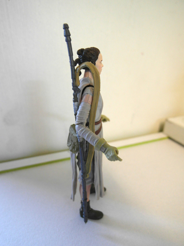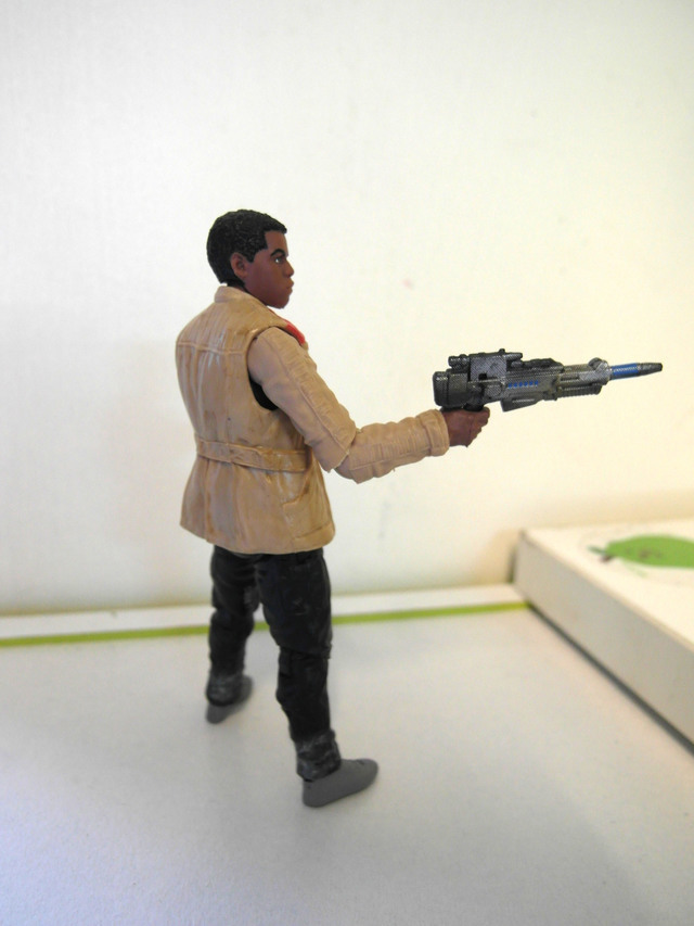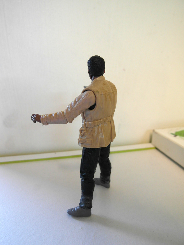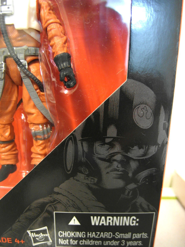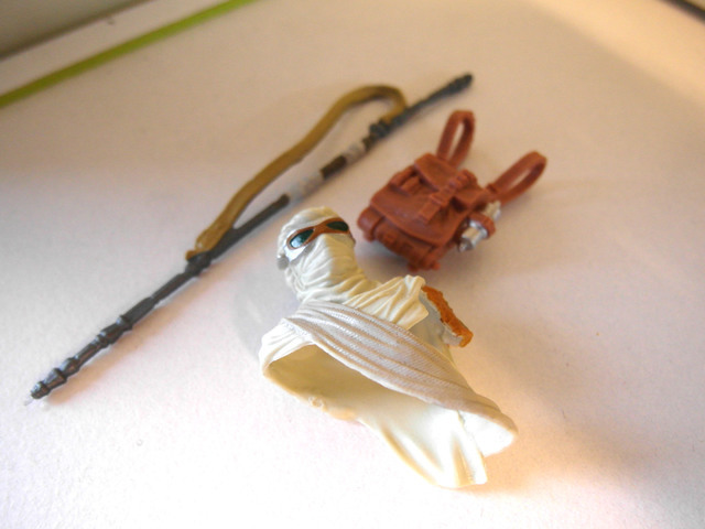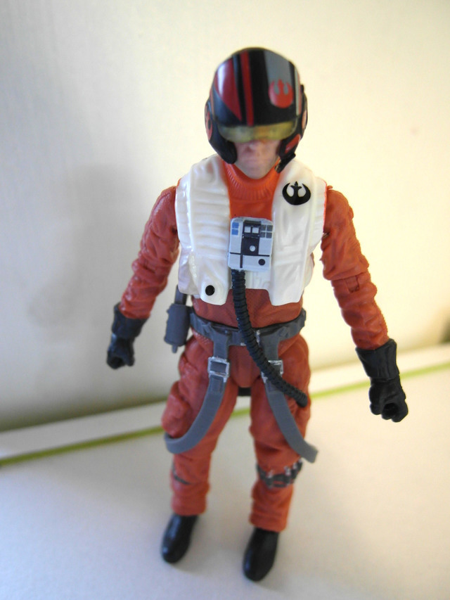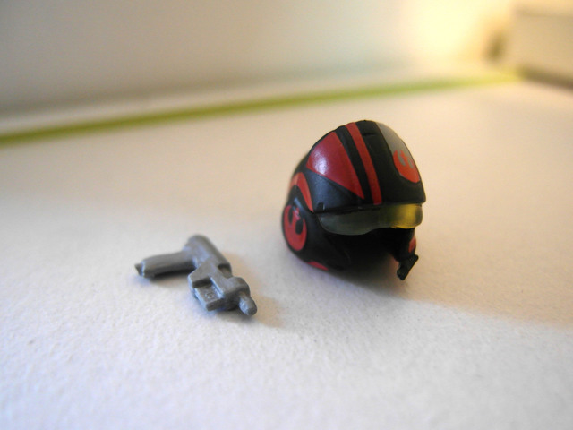 他的配件事一把鐳射鎗還有一顆x-wing戰機駕駛員的安全帽