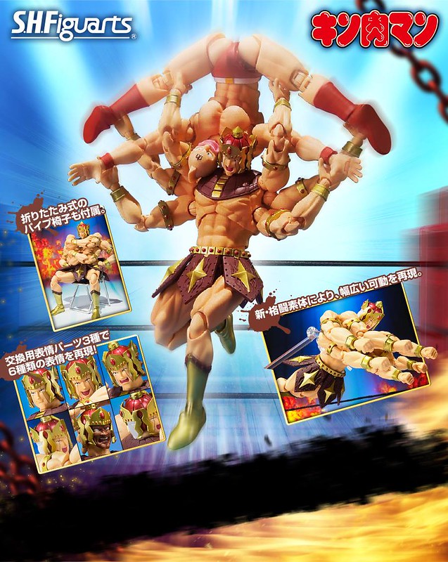 日Bandai萬代玩具公司S.H.Figuarts可動的《金肉人》系列將推出阿修羅/阿修羅人 アシュラマン(名稱暫譯),在故事當中擁有三個臉孔和六個手臂特殊造型的阿修羅三面人,有笑面、冷面、怒面等等三個面容,通常都是以笑面登場,使用龍捲地獄招式時會切換成冷面,在使用阿修羅究極爆裂彈絕招時候會切換成怒氣的臉孔,這次立體可動化也完整再現!