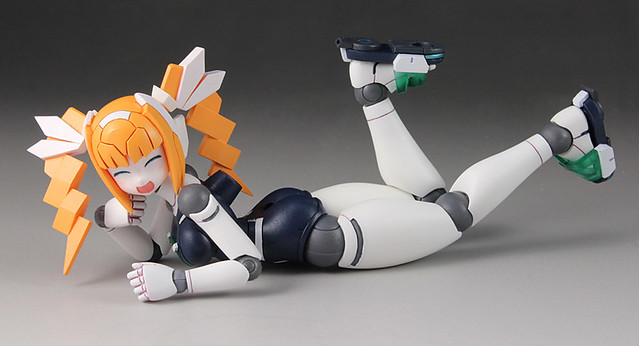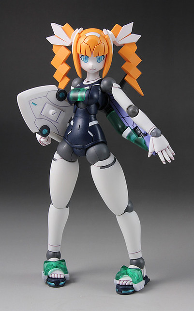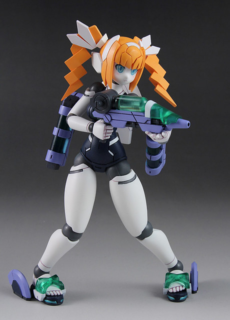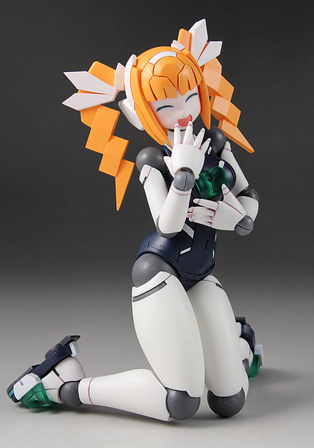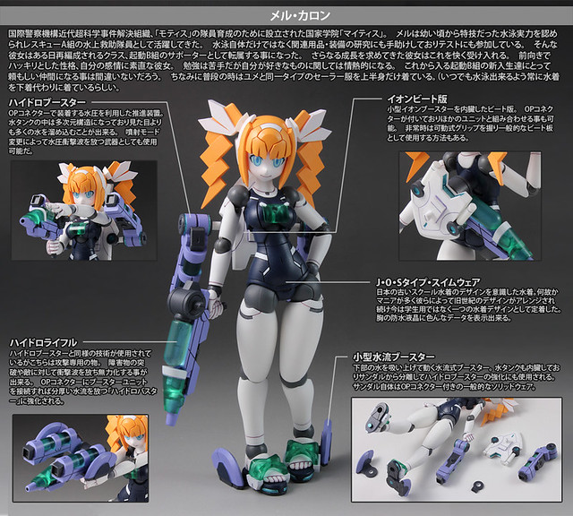 由日本DAIBADI玩具公司所原創的機械可動角色《機械新人類 ポリニアン/POLYNIAN》ロボット新人類ポリニアン(名稱暫譯),已經推出多款可動系列的機械美少女,這次以留著金色雙馬尾頭髪游泳社的社員之一梅爾 卡隆 メル カロン(名稱暫譯)商品化,將美少女和機械主題共同結合,商品附有手可以拿的高壓水步槍、腳部有小型的水流推進器可以自由裝置,裝備上高壓水推進器,和背上的白色推進器也可以拆下作為浮板來使用等等,喜歡這類可動機械人偶的玩具人可以參考一下歐!