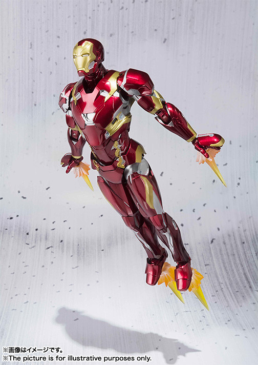 在S.H.Figuarts 品牌的鋼鐵人系列商品大獲好評之後,BANDAI 再度推出鋼鐵人在電影中的最新造型;發揮S.H.Figuarts 系列的專長,兼具了精彩的造型表現與靈活的可動性,這次的作品能夠藉由附屬的特效零件,重現鋼鐵人多樣生動的飛行、攻擊姿態,並且部分零件採用合金製作,更加強化把玩時的手感與姿態的穩定性。