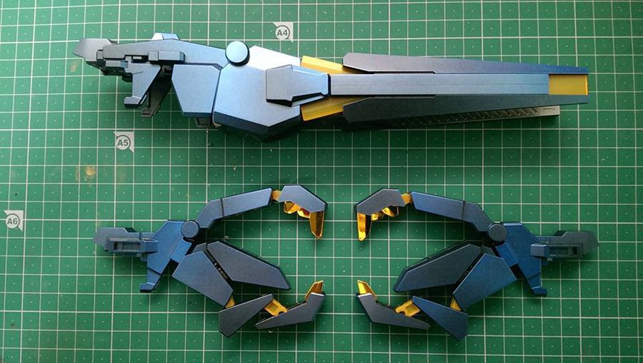 PB限定的貓爪配件終於到或了,趁著跨年閒閒無事一口氣完成,水貼部分感覺是在貼金箔(笑)配色方面與前作無異,先上黑鐵在上透明藍,貓爪整個煞氣,但顧於是神像,姿勢整個難喬,裝備過重手臂又會自然下垂,只能拍一些屍站的照片還請見諒,以下攝影分享