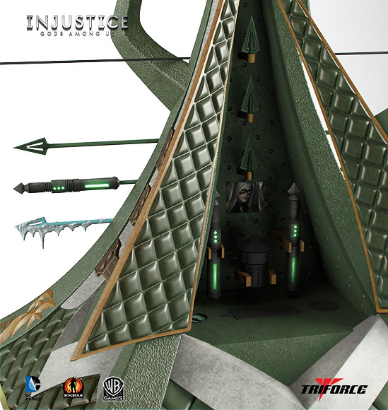這次所要推出的「綠箭俠」的武器庫的發想是來自於以DC Comics 為基礎所設計的格鬥遊戲「超級英雄:武力對決」(Injustice: Gods Among Us)中綠箭俠所使用的武器。在遊戲中,其被設定為擁有超強的箭術、能夠使用弓箭來進行格鬥、能夠使用小刀來進行格鬥、以及擁有華麗格鬥技巧的一位超級英雄。值得一提的是,他的弓箭上有被安置一把小刀。值得一提的是,在這次所推出的武器庫後方還可以打開,裡面除了可替換的箭頭之外,還有黑金絲雀(Black Canary)的照片喔!