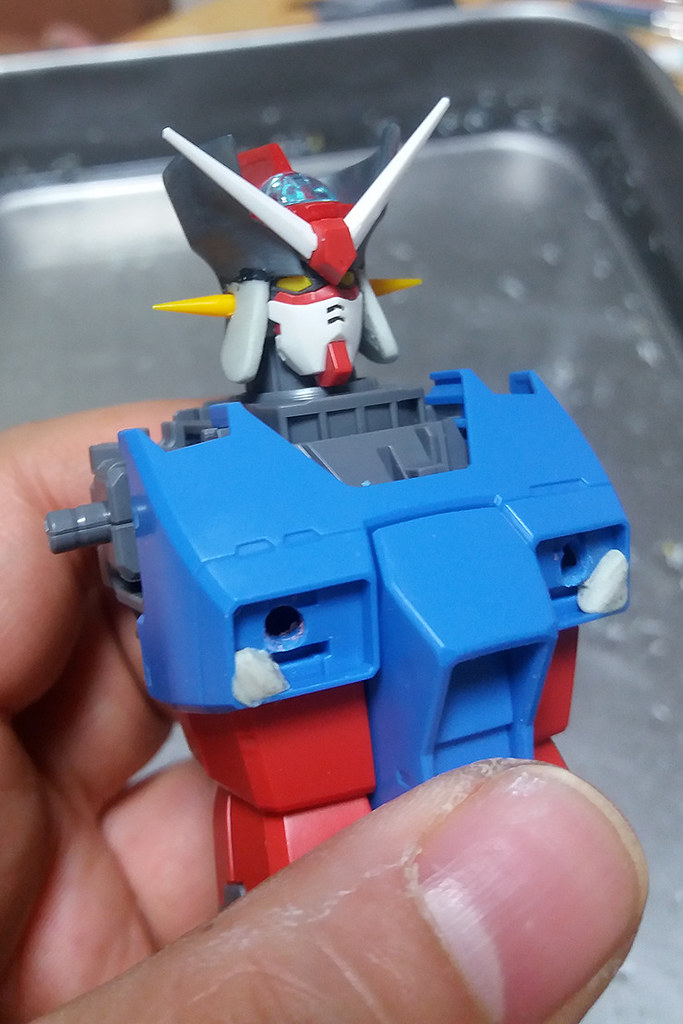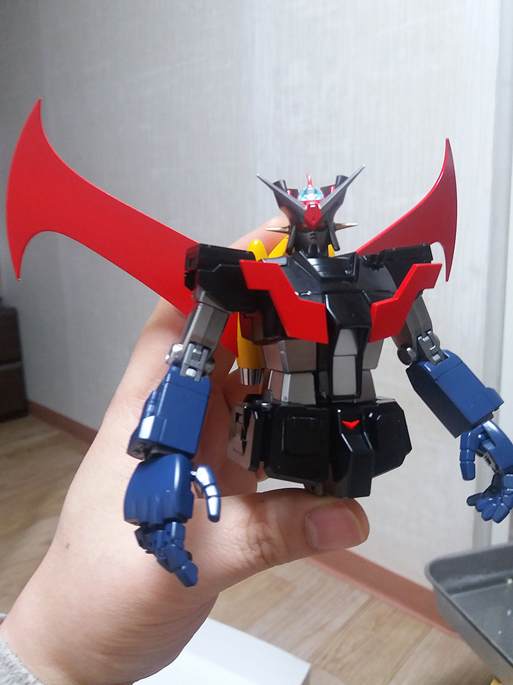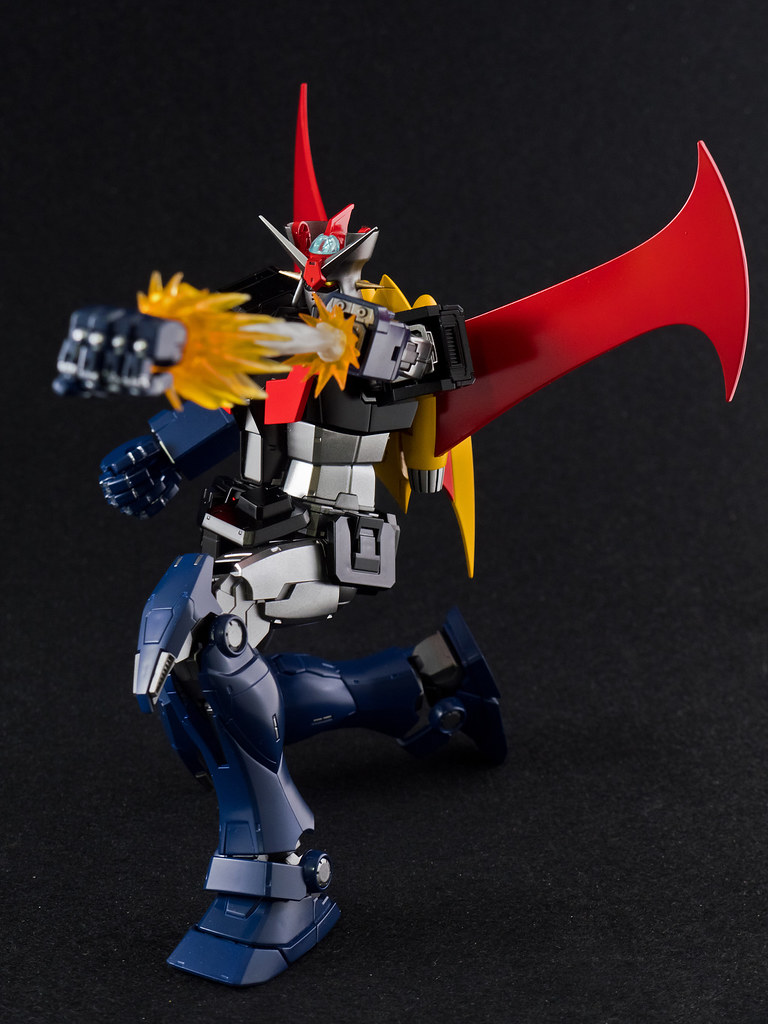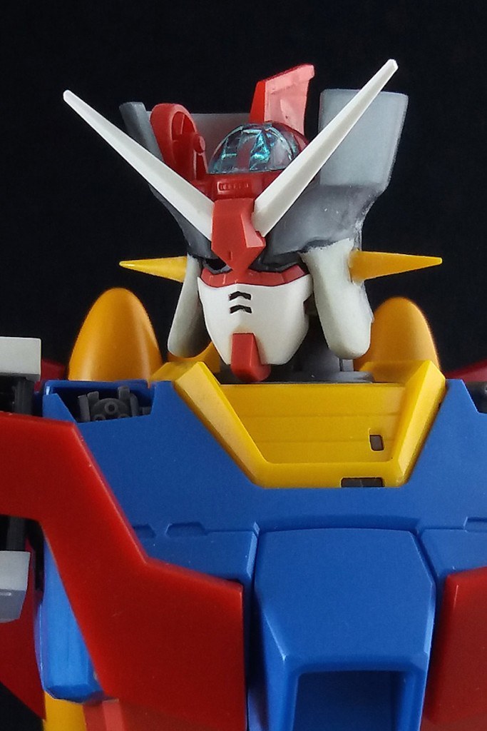 除了自行改造之外,背後的金剛飛翼(ジェットスクランダー),是借用了「超合金 真無敵鐵金剛」的配件來使用,並且改造攻擊特效零件來搭配。 除了特徵的配色之外,細部細節也做了更動與改造,讓造型更加地貼近無敵鐵金剛的設定;真希望有一天能見到這麼精彩的作品,能夠有機會聯名商品化啊!~