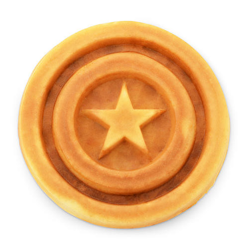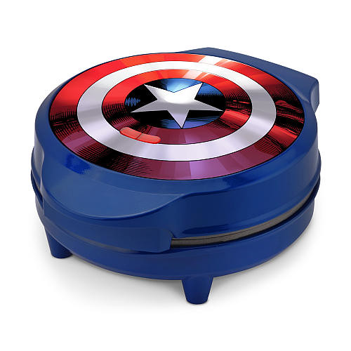 這一款讓小勞伯道尼也嫉妒,直呼該推出個弧形反應爐版本的鬆餅機,現在正在美國玩具反斗城的官網上販售。鬆餅機的機身採用了盾牌圖樣加上美國隊長的藍色配色,並且內部的烤盤使用了盾牌圖樣作設計,讓喜愛美國隊長的粉絲(或痛恨XD),可以在家天天輕鬆地製作、每位地享用(或破壞)麵粉製作的盾牌造型鬆餅(而不是「汎合金」材質)!