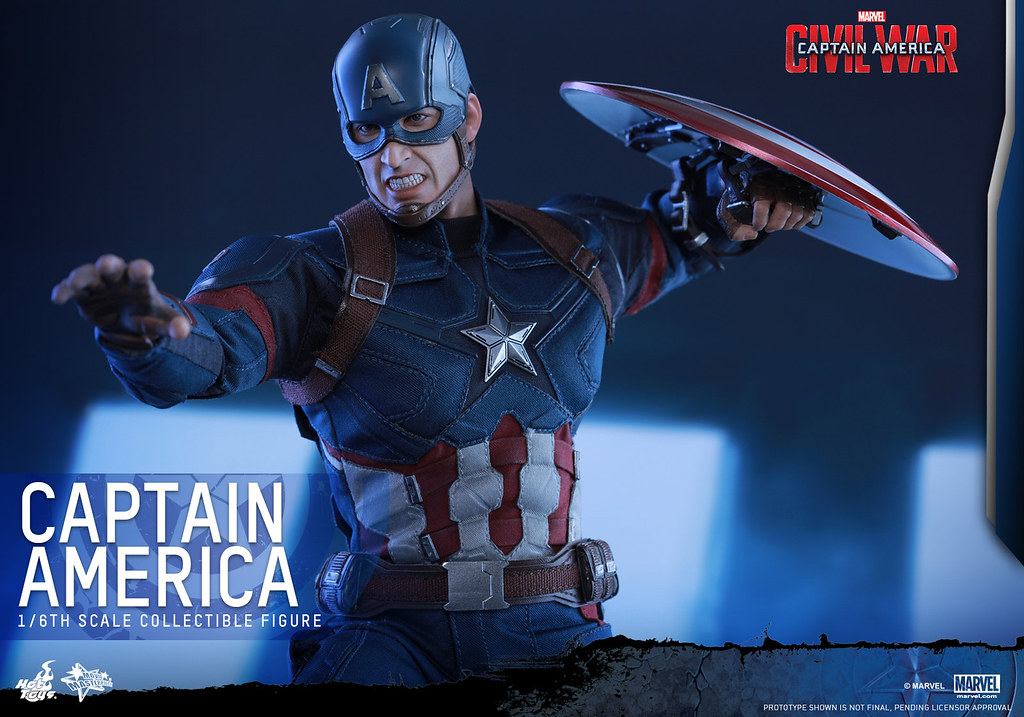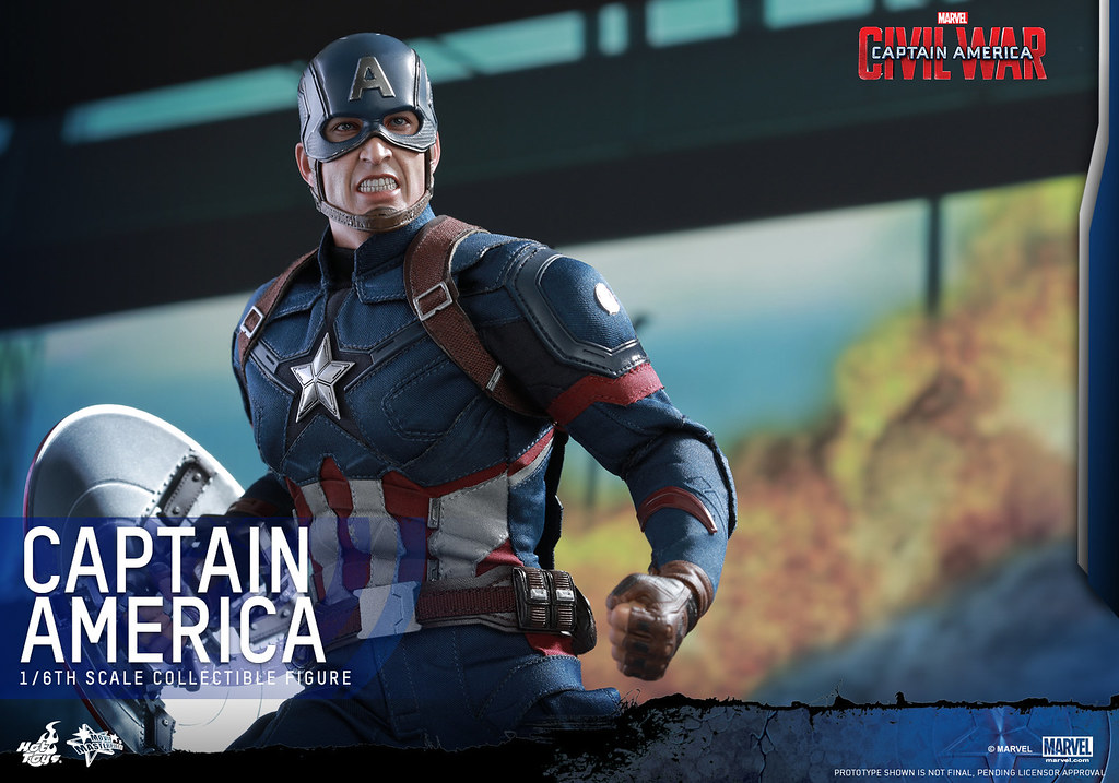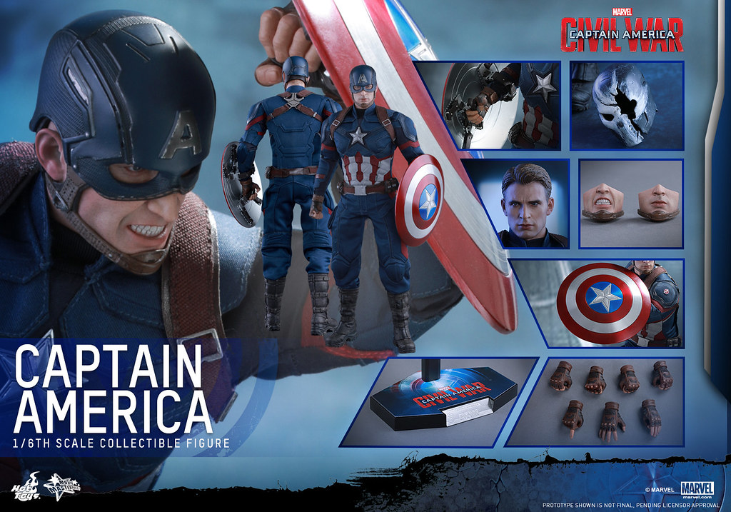 Hot Toys 公司將要推出即將在2016 年05 月06 日上映的「美國隊長3:英雄內戰」(Captain America: Civil War)中的主角美國隊長「史蒂芬.羅傑斯」1/6 比例人偶作品。有收藏之前所推出美國隊長系列1/6 比例人偶的玩具人更不可以錯過這款最新造型的美國隊長。為了呈現史蒂芬.羅傑斯戴上頭盔之後不同的嘴部造型,Hot Toys 公司也推出了二款可替換的嘴部表情配件,實在是太帥氣啦!