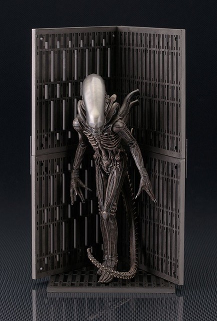 讓宇宙船Nostromo 號陷入恐怖威脅的「異形 Big Chap」,採用的是設計師H·R·吉格爾的概念設計為基礎所創作的恐怖狩獵者。其中最具特色的就是其頭部巨大的半透明頭蓋骨、背上凸起的四隻管狀物以及異樣修長的手足。原型師藤本圭紀考究了電影現存的珍貴資料,將其造型完全、忠實地呈現。與前作相同,這次也將附屬了6 塊太空艙地板零件,並搭配上特製的閃爍效果LED 燈光,重現原作中最後場面的緊張、恐怖氣息。