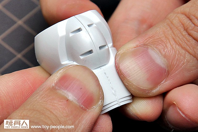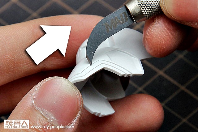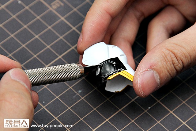 ▼ 盡量讓表面磨光滑後就可以進行邊緣的補色動作,再補色之前由於接合部位受到模型膠水的影響,因此要使用MADWORKS鷹嘴刀將邊緣的溝槽加深,這麼一來補色時邊緣會看起來更加俐落!