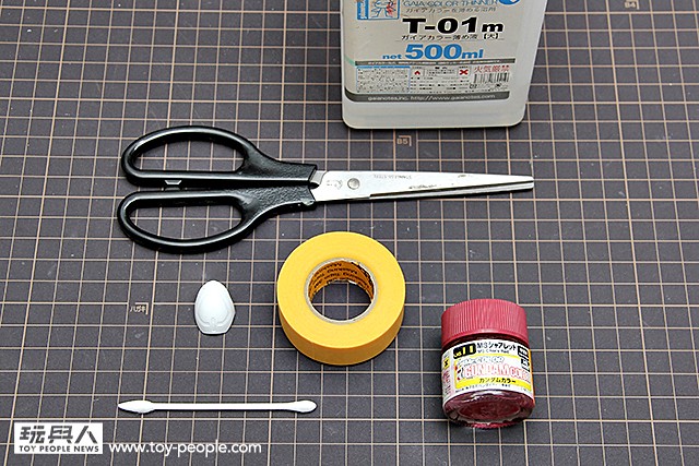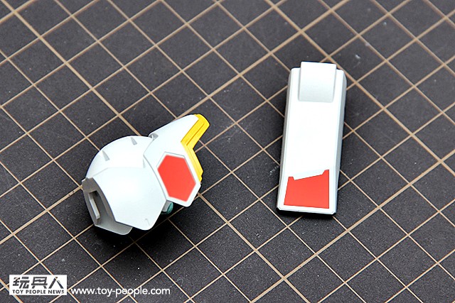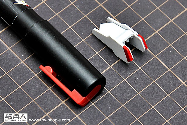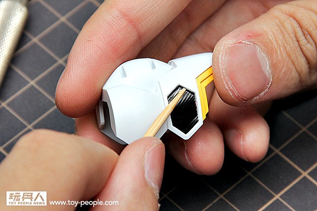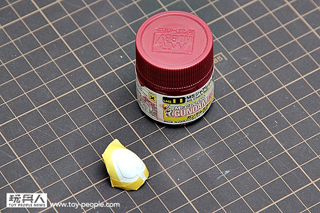 ▼ 最後一個步驟就是將獵魔鋼彈上一些被戲稱「電源鍵」的部分作補色嘍。(需要的工具有T-01溶劑、遮蓋膠帶、剪刀、棉花棒、UG11夏亞紅顏料)