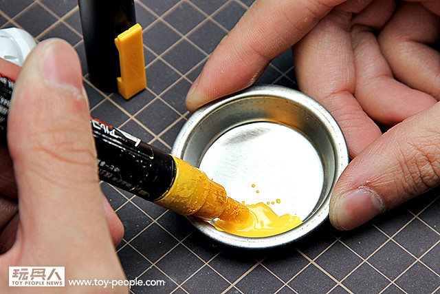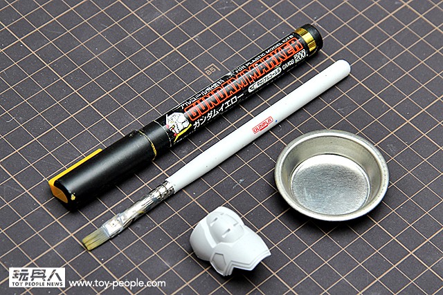 ▼ 接下來要準備的工具有鋼彈麥克筆(GM08鋼彈黃)、塗料皿、平頭筆。