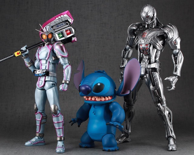 左起:SHF Rider Chaser / Movie Revo Stitch / Movie Revo Ultron