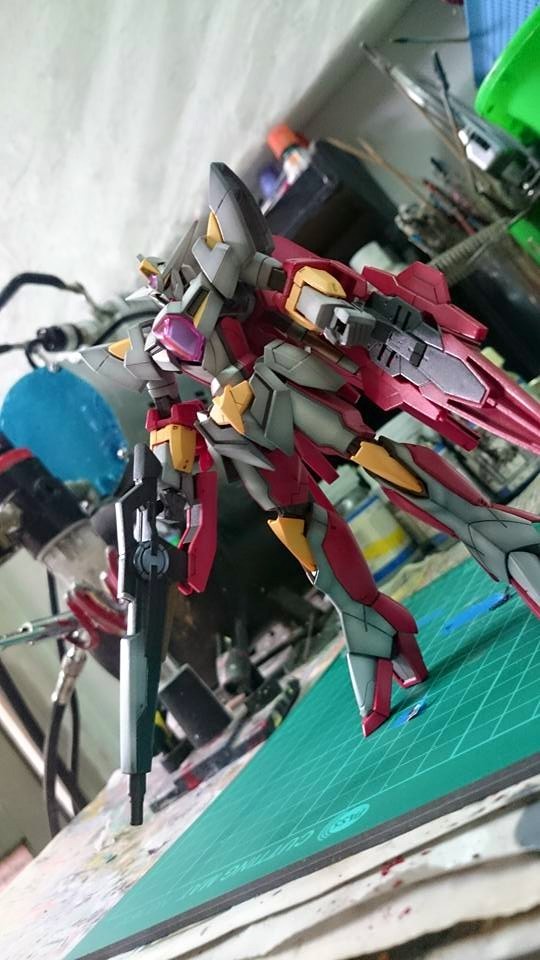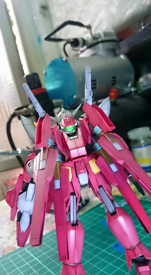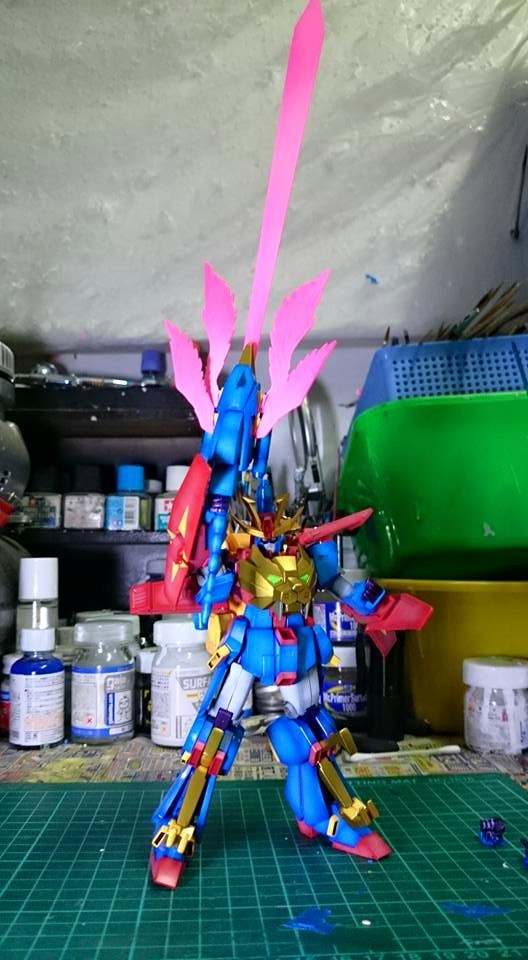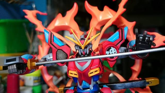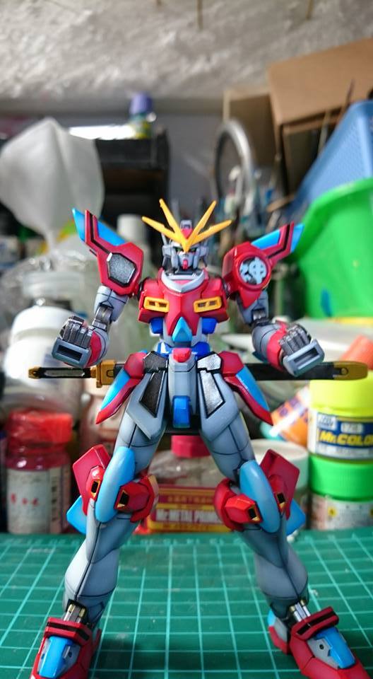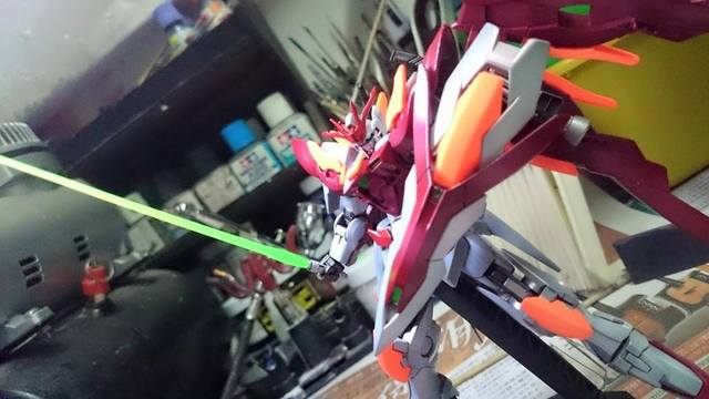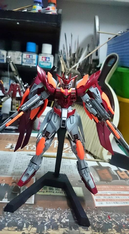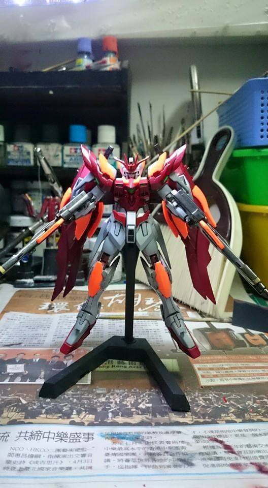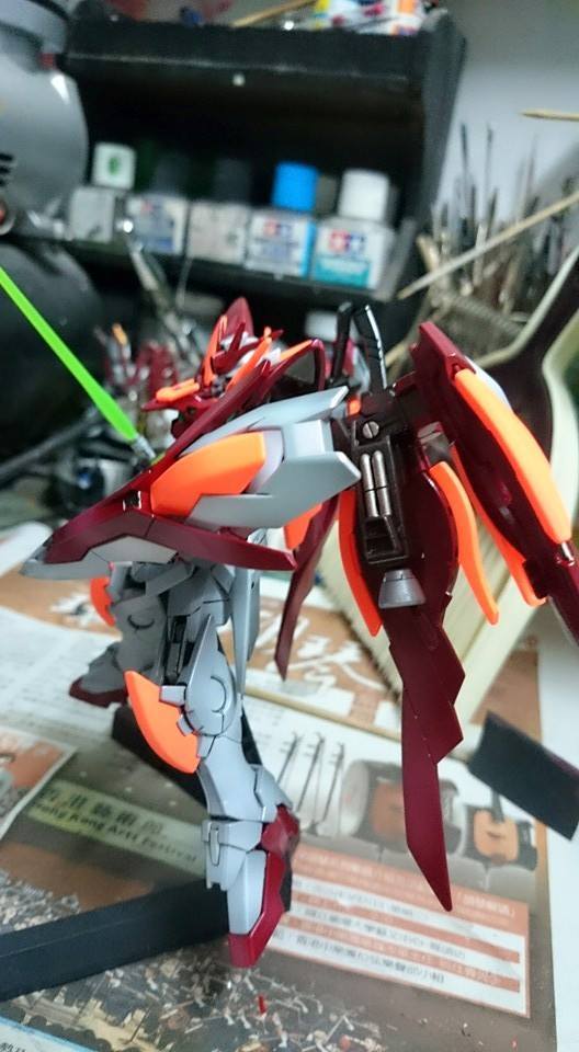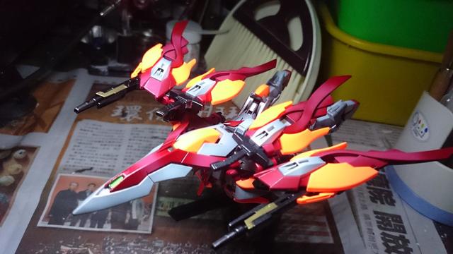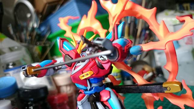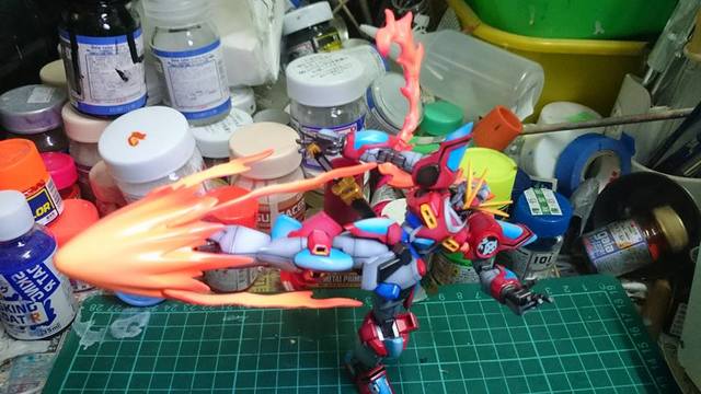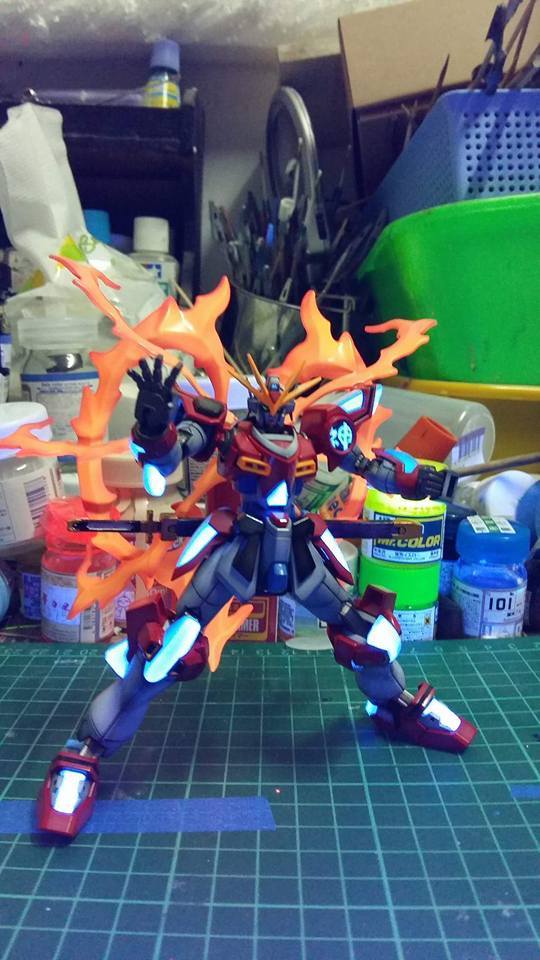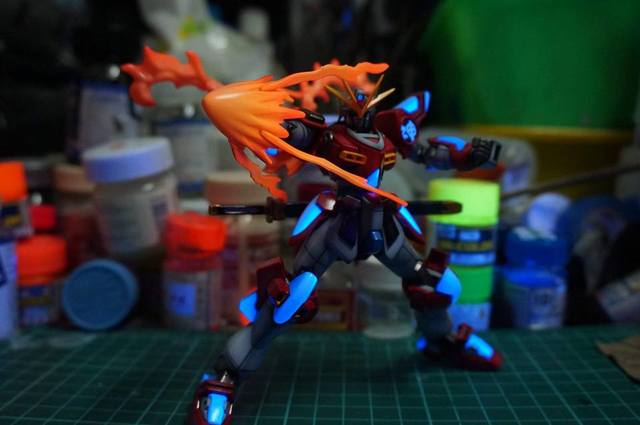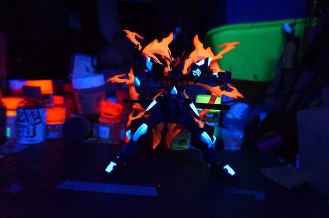這隻神木燃燒鋼彈是下重本在噴的.為了讓火焰的顏色亮度更亮.隊長我可式噴掉好幾克的黃色跟紅的夜光粉呢!