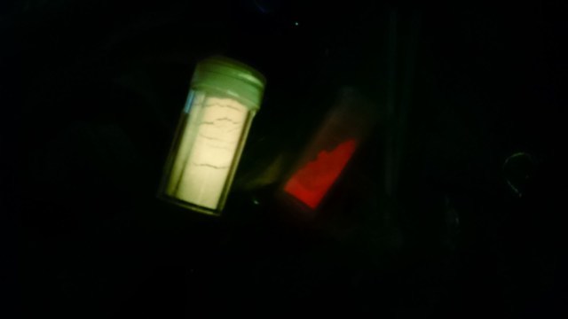 哇哇哇!.......透明漆加夜光粉後.發光測試