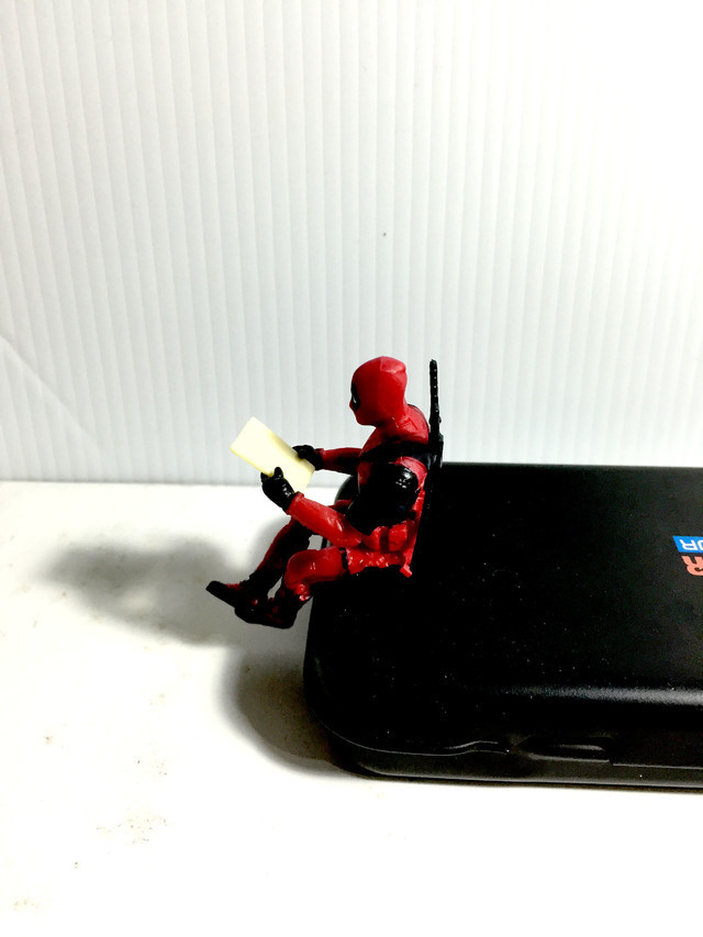 而且這個動作跟畫面就是預告片中死侍在畫圖準備大開殺戒的坐姿