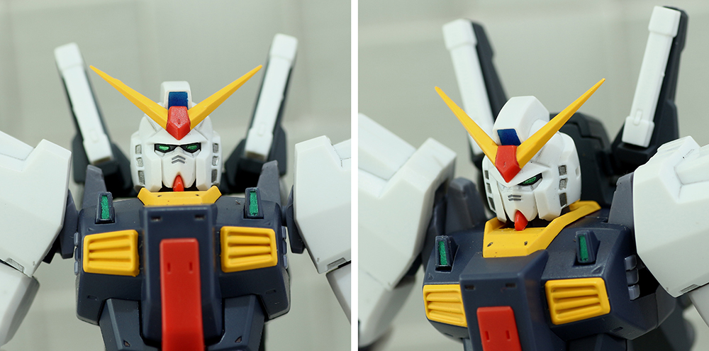 頭部就是機械人的靈魂,這次的頭雕造型簡潔,眼神犀利,細節也說得過去,與RG比較起來高下立見。