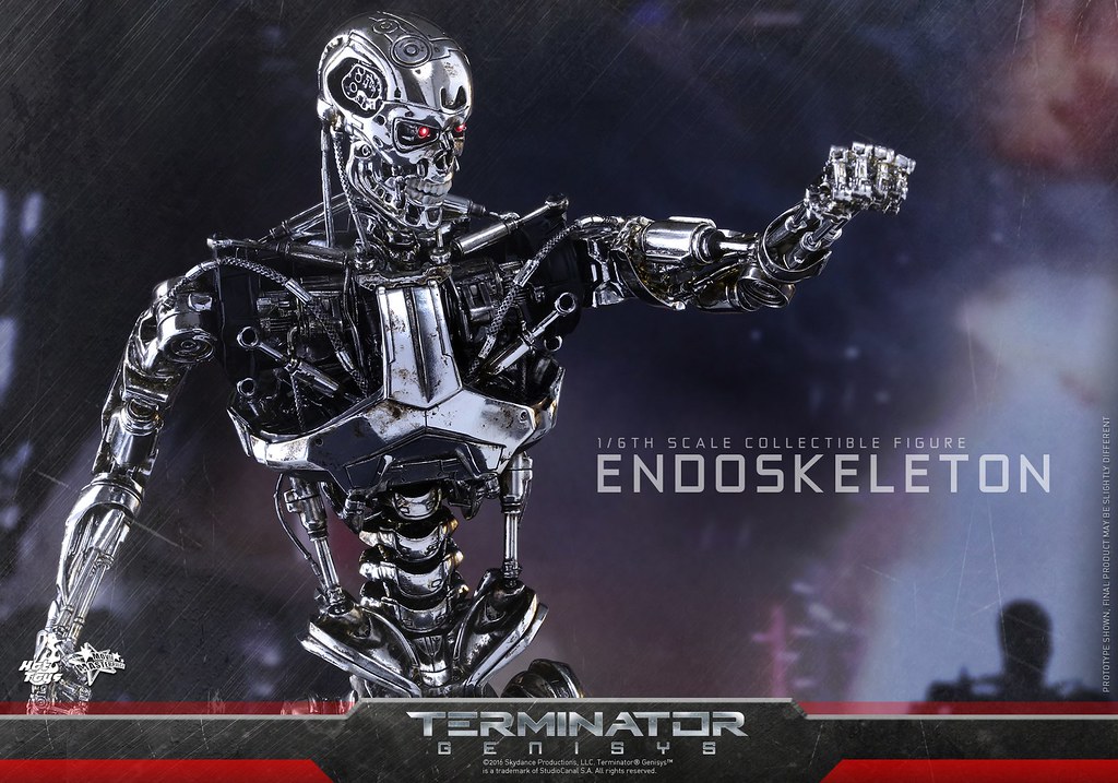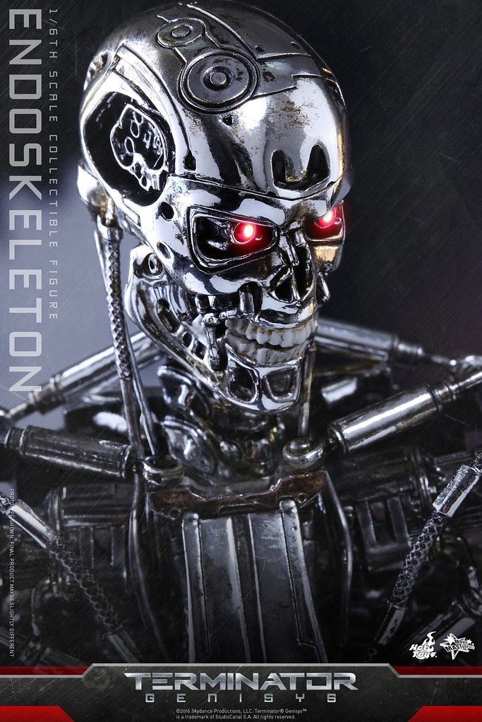 Hot Toys 公司將要推出魔鬼終結者系列電影第五部「魔鬼終結者:創世契機」(Terminator Genisys)中的「內骨骼」(Endoskeleton)作品,繼日前推出的「T-800 守衛」(T-800 Guardian)的1/6 比例作品之後,現在將要推出魔鬼終結者必入手的「內骨骼」作品啊!相信喜愛魔鬼終結者的玩具人一定都不會放過這款造型超搶眼的機器人吧?!