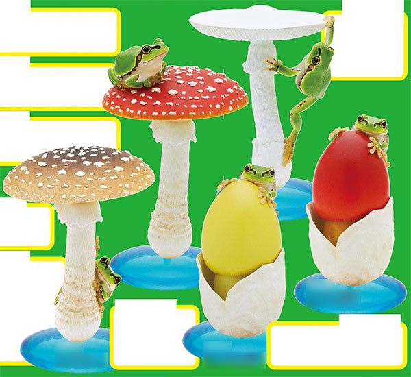 專門推出轉蛋、盒玩尺寸商品的株式会社いきもん(naturetechnicolour)之前推出的「蘑菇和樹蛙」 キノコとアマガエル(名稱暫譯)轉蛋作品,以逼真的樹蛙來結合顏色鮮豔蘑菇的主題相當受到喜愛轉蛋尺寸玩具人的歡迎,這次將以新配色和新盒裝的方式來再次販售,本來是使用透明底座(參考照片第四張)此次也換成是水藍色的(照片第三張),喜歡《naturetechnicolour》系列作品的玩具人可以參考一下歐!