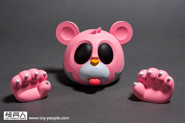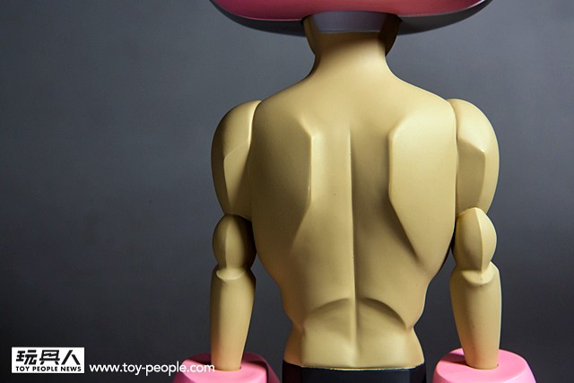 不過,這次雖然有四個分件(頭部、左手掌、右手掌、身體),但在整體可動度的部分並沒有提升,因此在把玩上相對可玩性並不高。不過就設計師玩具來說,其主要的功用還是在於擺設之用,則這個小問題並不嚴重。且此作品的顏色不管是搭配深色、淺色的木頭,或是黑色、白色的櫃子都毫無違和,放在家中絕對是最亮眼的擺飾之一。