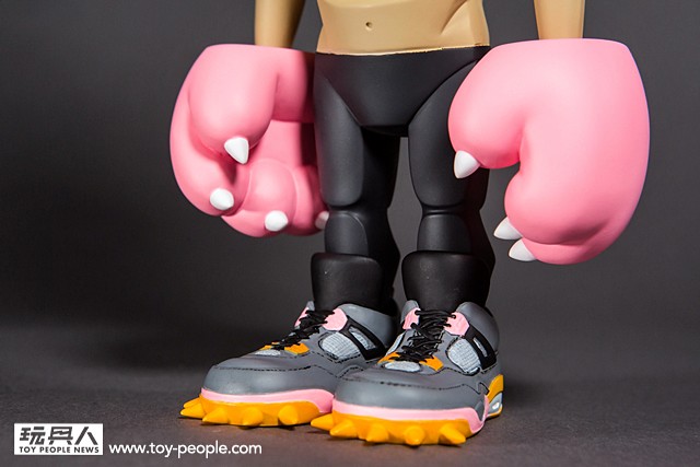 這次由JPX × fools paradise × IPH 聯名推出的全新角色「HUNZTER」作品表現得非常棒。在整體細節的雕刻部分非常俐落,線條層次的分割非常明確。而在塗裝的部分,整體的顏色使用非常的飽和,且在顏色的搭配上也處理得當,不同區塊的上色也很乾脆。值得一提的是,在頭部與鞋子的部分,多個顏色的塗裝處理非常精準。