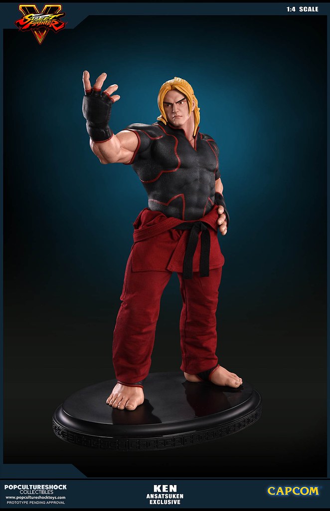 CAPCOM 所推出最新系列的「快打旋風V」(Street Fighter V)已於2016 年02 月16 日上市啦,而Pop Culture Shock Collectibles 公司繼日前推出了全新登場的狂暴角色:「Necalli」雕像作品之後,又將要推出全新造型「肯」(Ken Masters)1/4 比例的雕像作品,有興趣的玩具人不要錯過啦!