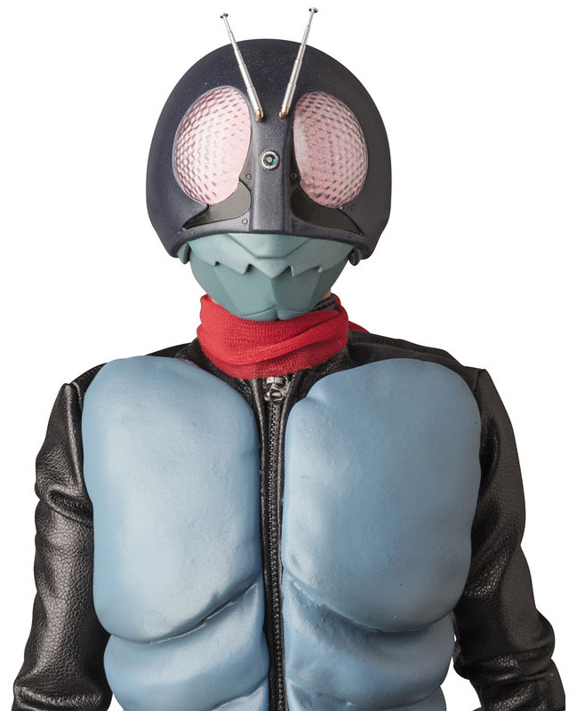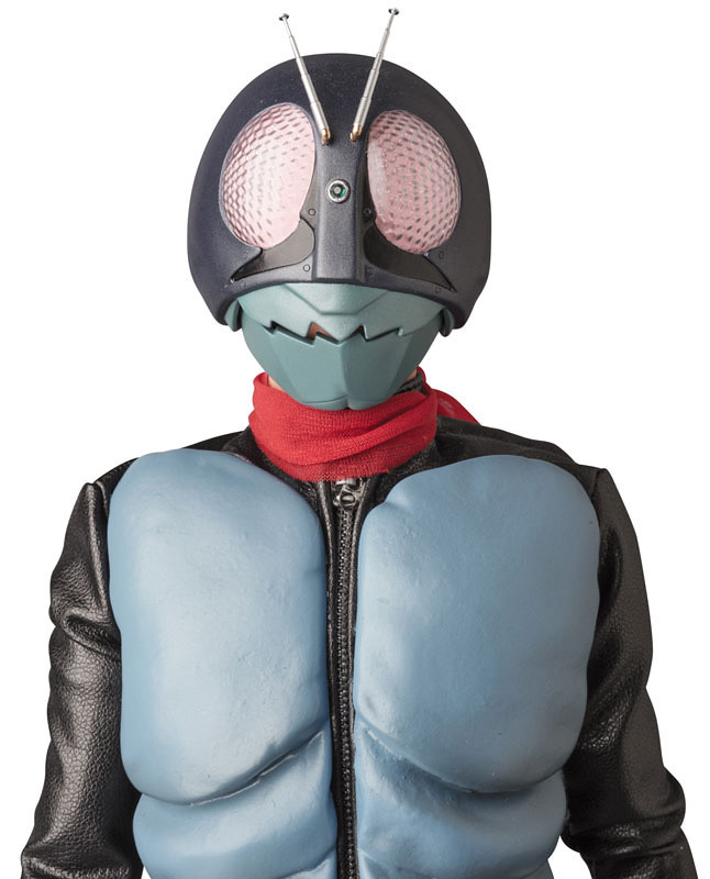 Medicom Toy 這次所推出的作品,最大的賣點在於改良了過去收藏家們所詬病的問題,那就是合成皮材質不易保存、容易碎裂。這次的作品將使用日本製的高耐久合成皮「エターナルレザー」製作,全身的造型、零件使用了最新的數位技術來製作新規造型,尤其是特徵的頭盔造型完全重現原作的設計,包含了將複眼中的特殊花樣也完整重現。