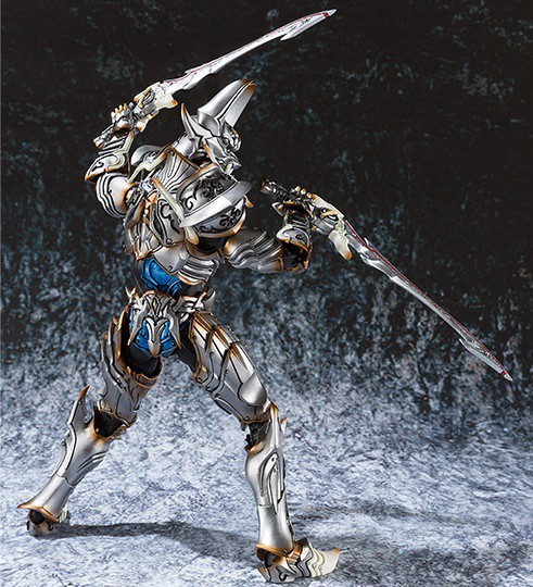 劇中以銀色塗裝鎧甲為主要造型的銀牙騎士ZERO這次也精彩再現,作品附有交換用手首左右各2種、銀牙剣一式、羽パーツ一式和専用台座一式等等豐富配件,銀牙劍可以還原劇中一樣合併起來攻擊敵人,還有背部可以裝備巨大羽翼的飛行配件(羽パーツ一式),作品預計於魂web線上商店2016年2月25日開始接受訂購,喜歡《魔戒可動》系列的玩具人別錯過了歐!