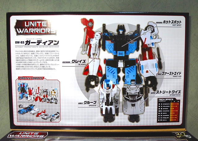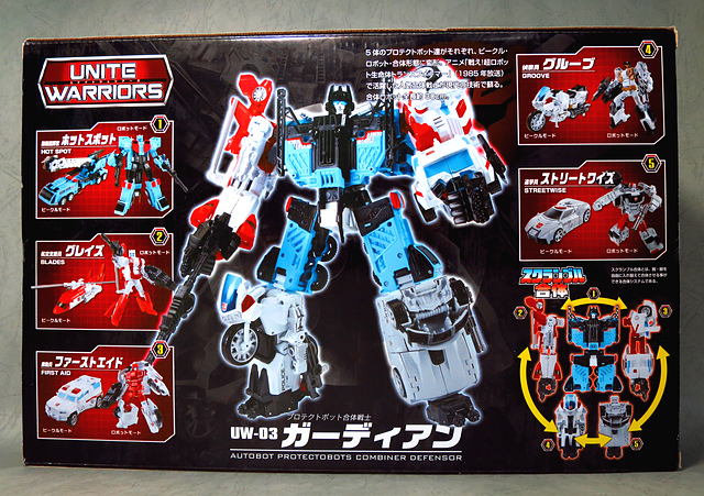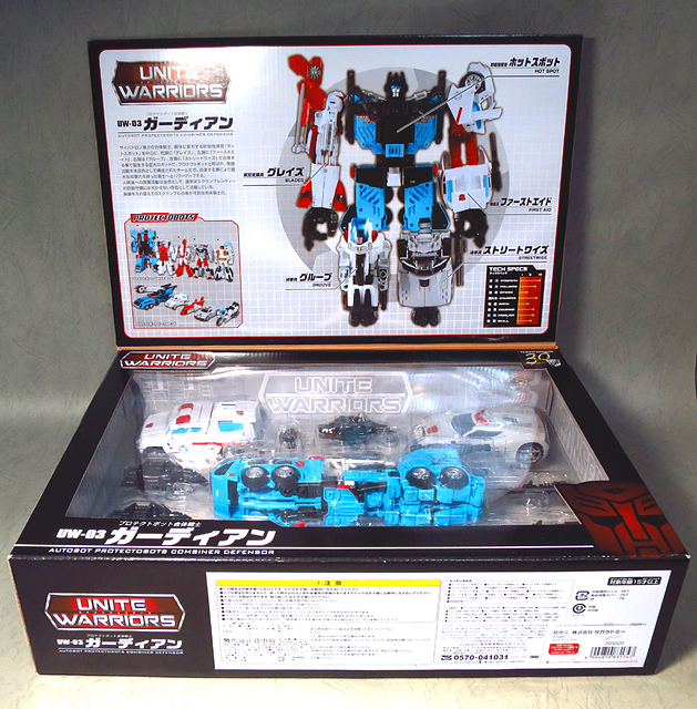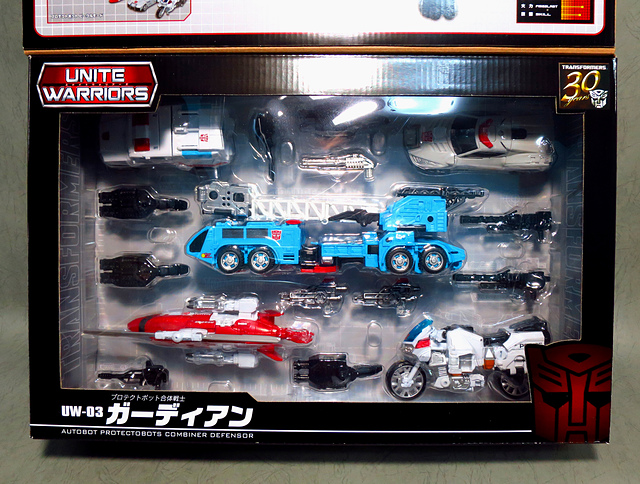 闊別三十載,由五人小隊Protectobots(機器衛兵/保衛派)所組成的Defensor/ガーディアン(守護神/保衛者),終於在官方主打的合體戰爭中再現江湖。在前面的幾篇分享中,我們已經見識過各具特色的五個成員,而作為壓軸的本篇,當然要卯起全力來分享這款日版UW系列的「真‧守護神」。