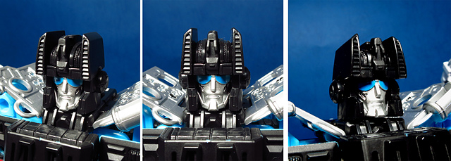 ↓頭雕,傳承自G1老玩具的大眼睛也如實地重現。配色上,美日兩版均是採用動畫中的藍眼,若想重現老變的紅眼只好自己重新噴塗了