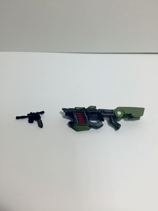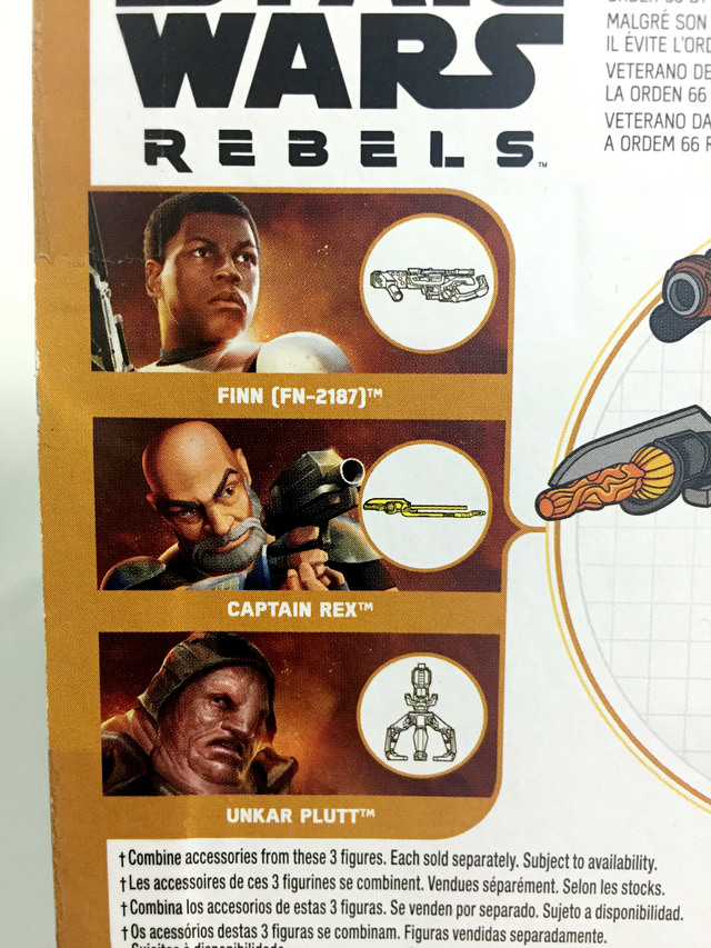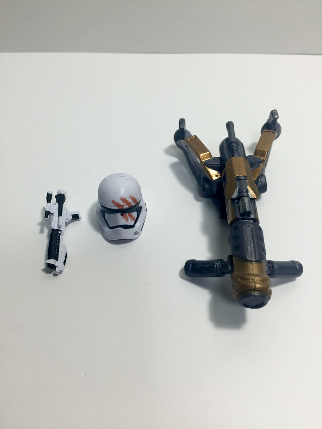 配件有風暴兵的雷射槍、沾了芬恩好友的血的頭盔、組合武器之一